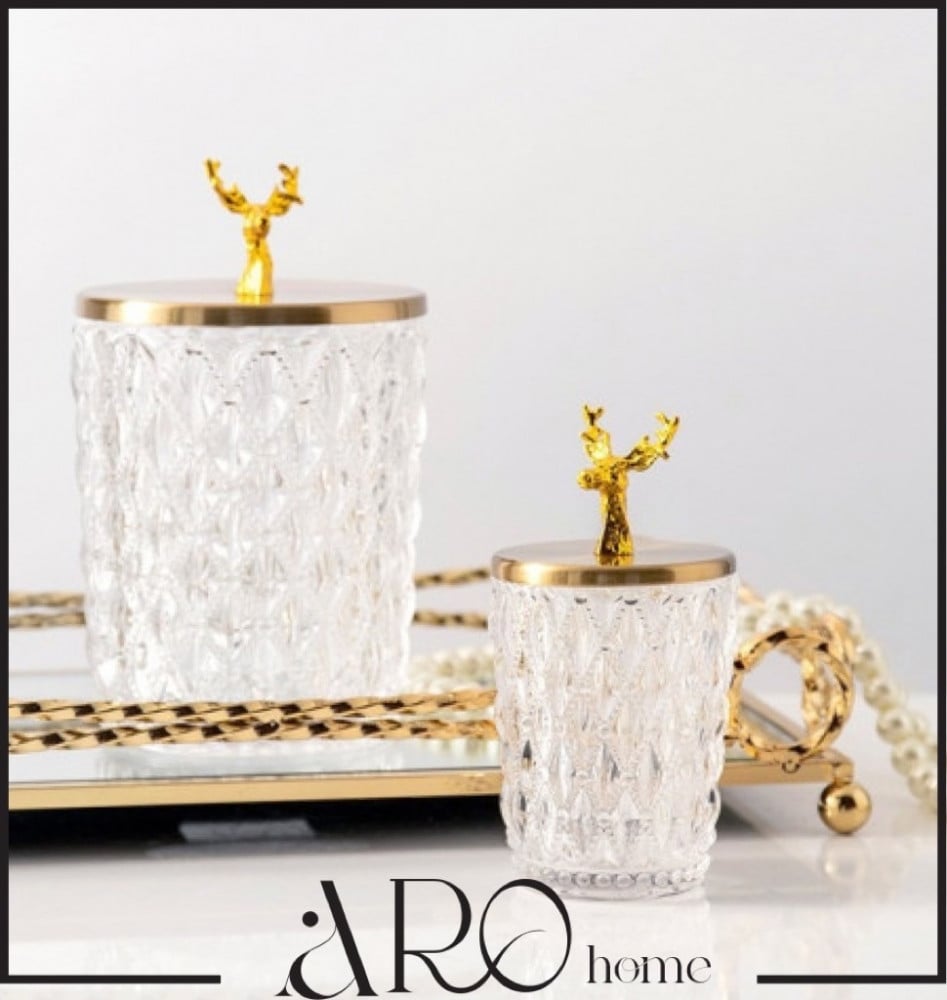 وعاء تقديم زجاجي. مع مسكة غزال ذهبية انيقه ، تجمع بين جمال التصميم العصري و تميزها كقطعة فريدة تضيف لطاولتك الأناقة, وأيضا تمثل هدية الزفاف المثالية أو هدية المنزل الجديد , مناسبة للحلويات وتقديمات مابعد العشاء والمكسرات ،