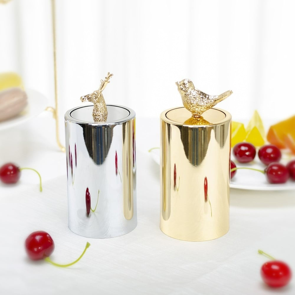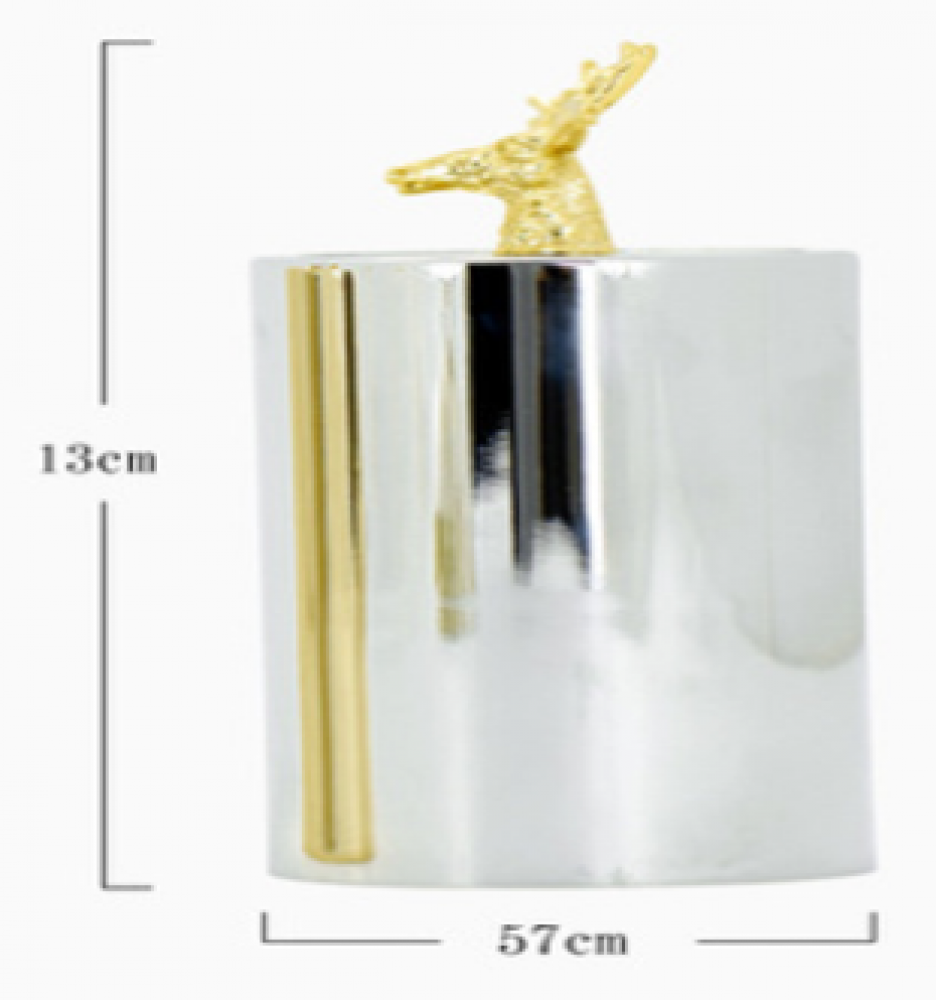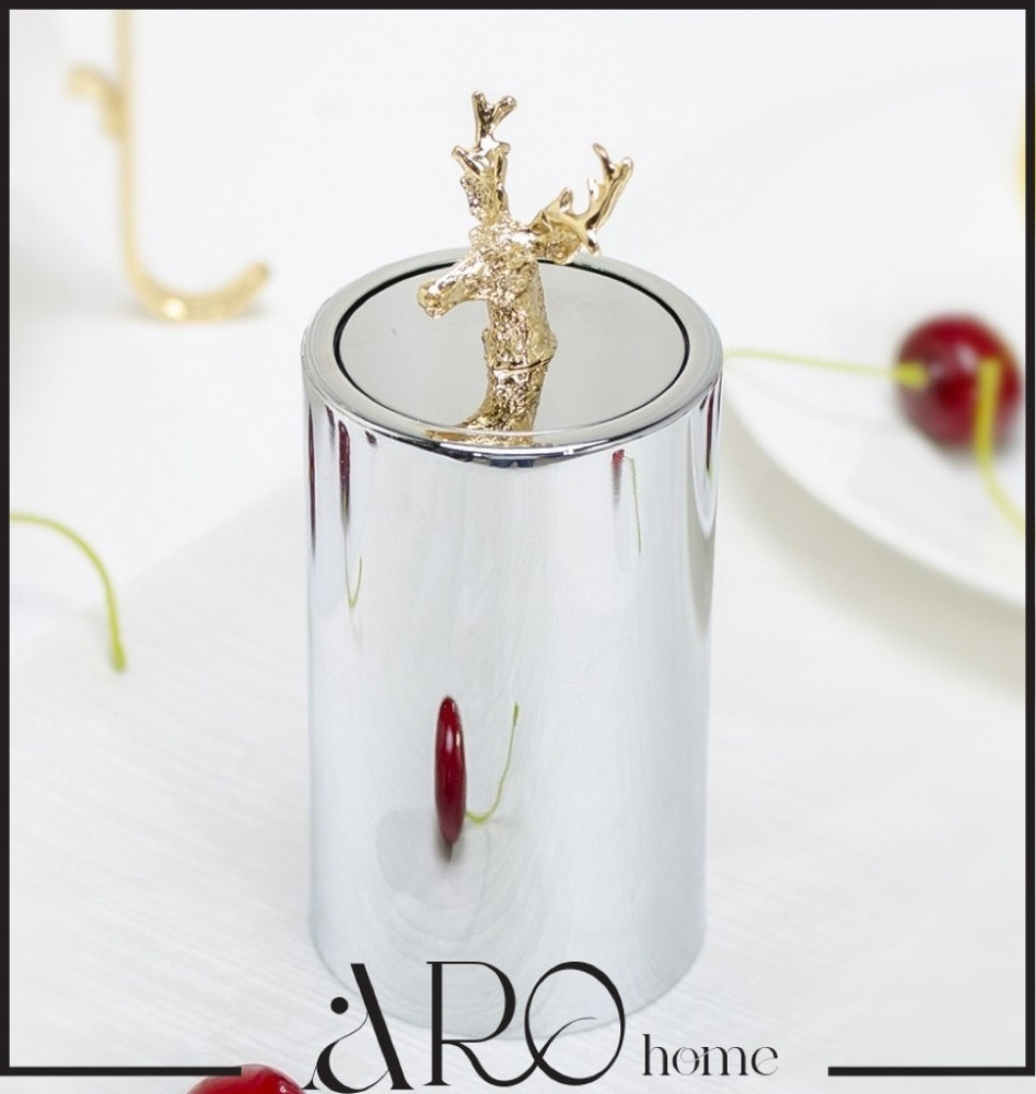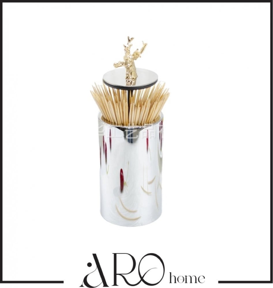 قاعدة للاعواد او الملاعق الصغيرة باللون الفضي وراس غزال ذهبي