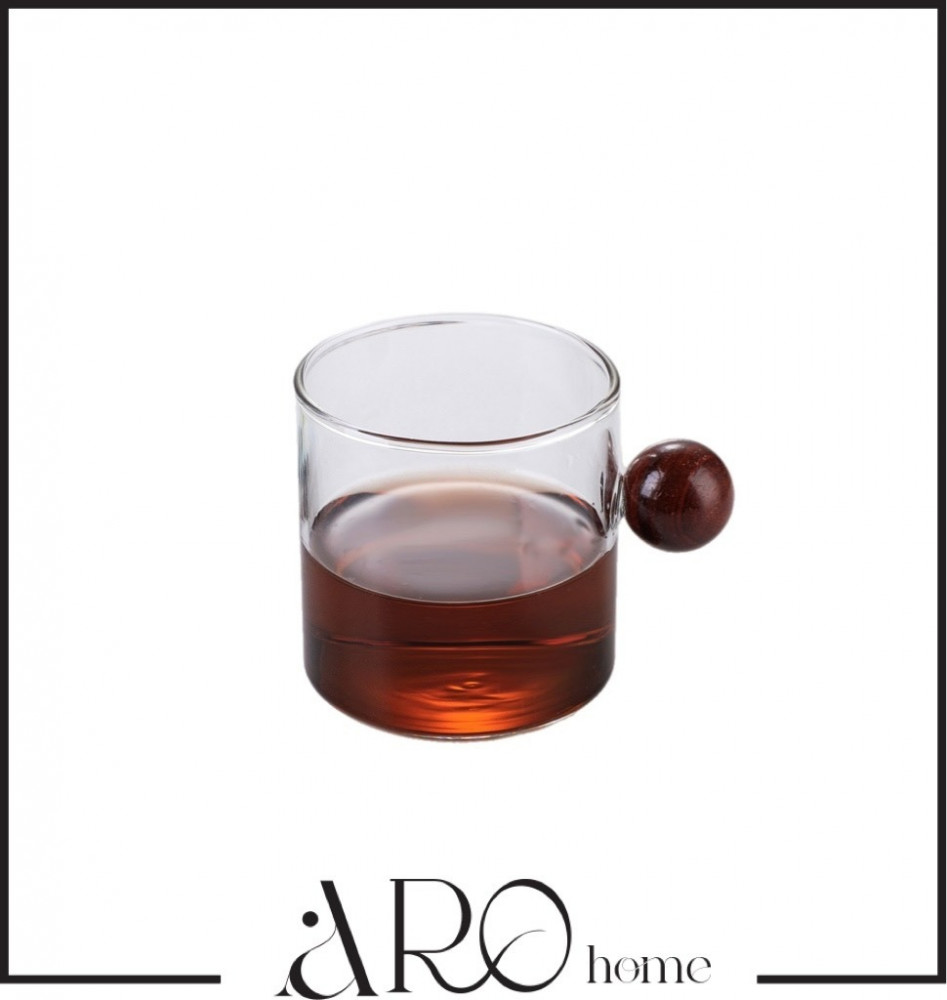 فنجال قهوة أنيق زجاجي بمسكة خشب ، راقي جدّاً وأنيق تناسب القهوة العربية والتركية ..